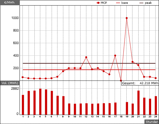 peak (Phelix Peak) = stundengewichteter Durchschnittspreis pro Tag für die Stunde 9 - 20.