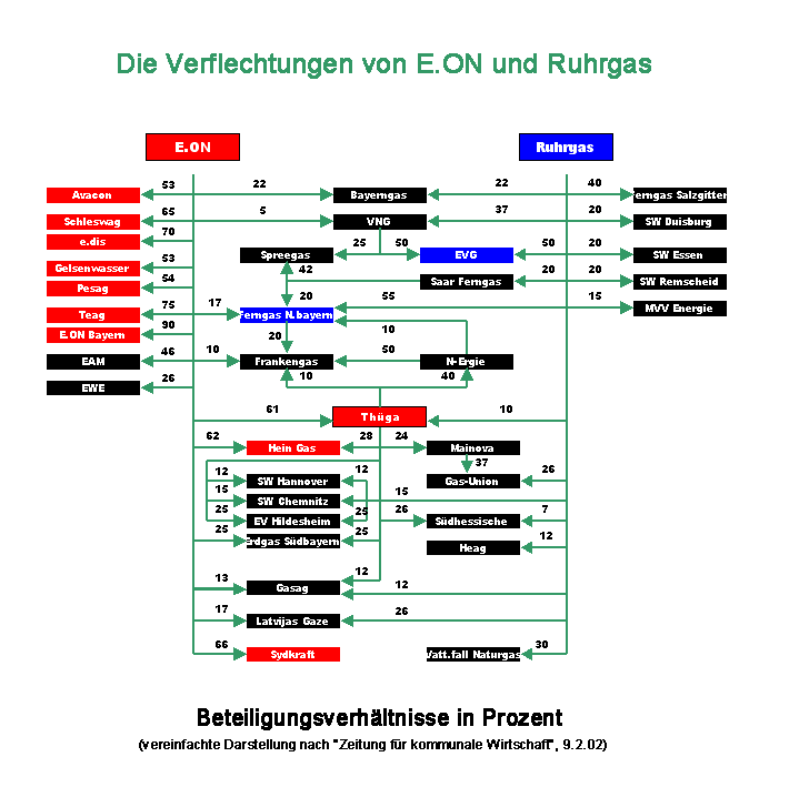 Die E.ON AG beantragte am 19. Februar beim Bundeswirtschaftsministerium eine Ministererlaubnis für den beabsichtigten Zusammenschluß mit der Ruhrgas AG, nachdem das Bundeskartellamt die Fusion untersagt hat (siehe 020103). Der Antrag bezieht sich auf die Ruhrgas-Anteile der Gelsenberg AG in Höhe von 25,5 Prozent ( 011208). Zugleich kündigte E.ON an, auch für den Erwerb der mit 34,8 Prozent an Ruhrgas beteiligten Bergemann GmbH (011110) einen Antrag auf Ministererlaubnis zu stellen.