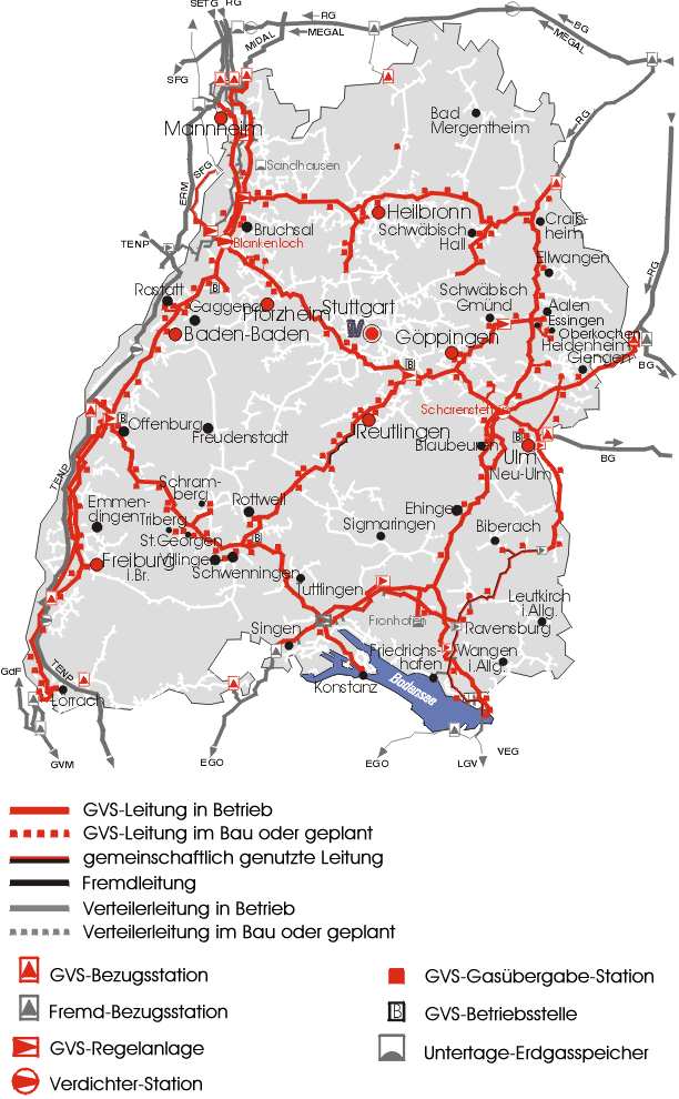 Die Energie Baden-Württemberg (EnBW) und der italienische Energiekonzern Eni erwerben gemeinsam eine Mehrheit von 62,22 Prozent an der Gasversorgung Süddeutschland GmbH (GVS), die über ihr 1881 Kilometer langes Fernnetz Baden-Württemberg und das angrenzende Ausland mit Erdgas versorgt (siehe Karte). Entsprechende Kaufverträge wurden am 27. Juni 2002 unterzeichnet. Sie stehen noch unter dem Vorbehalt, daß die Kartellbehörden der Transaktion zustimmen.