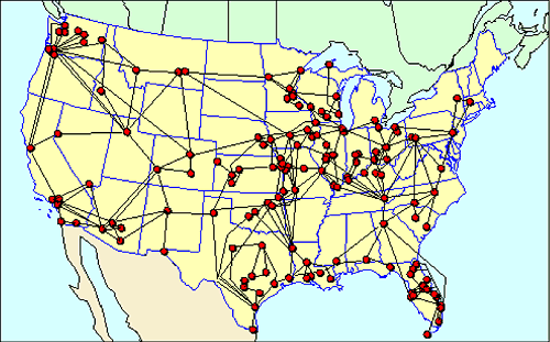 Kanada über. Im Süden gibt es Verbindungen nach Mexiko. Am
