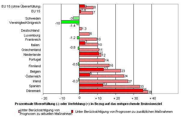 und den für 2010 prognostizierten Emissionen aufgrund aktueller nationaler