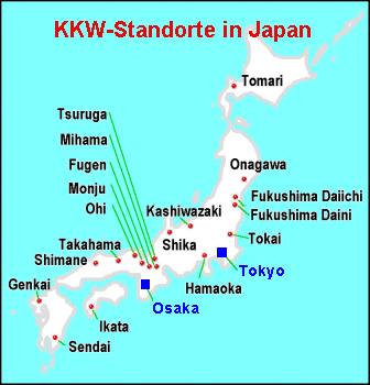 In Japan gibt es 54 Atomreaktoren, die den Strombedarf des Landes zu 25 Prozent decken. Zwei weitere befinden sich im Bau. Die Regierung will bis zum Jahr 2010 insgesamt elf weitere Rektoren in Betrieb nehmen.