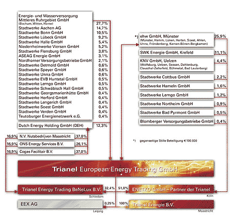 Die Trianel Power Projektentwicklung GmbH & Co. KG (TPPE) wurde am 20. Juli 2004 gegründet. Sie ist eine Tochter der 1999 gegründeten Energiehandelsunternehmens Trianel European Energy Trading GmbH mit Sitz in Aachen und 24 Stadtwerken als Gesellschafter (siehe Grafik). Über die Tochter Enetko GmbH (000312, 010410) bietet die Trianel-Gruppe den Kommunen auch Unterstützung bei Vertrieb und Marketing sowie die physische Belieferung von Geschäftskunden mit Energie an.