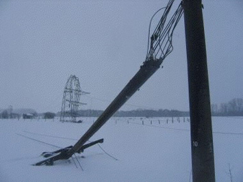 Ungewöhnlich starke Eislast an den Hochspannungsleitungen in Verbindung mit "Seiltanzen" hat am 25. November einen großflächigen Ausfall des RWE-Versorgungsnetzes im Münsterland bewirkt. Insgesamt wurden im nördlichen Nordrhein-Westfalen und im südlichen Niedersachsen fast siebzig Hochspannungsmasten umgeknickt oder verbogen (siehe Fotos). Für rund 250.000 Menschen fiel stunden- und tagelang - im Extremfall bis zu einer Woche - der Strom aus. Darüber hinaus kam es am 25. November im Ruhrgebiet, am Niederrhein und in Westfalen zu Spannungseinbrüchen und kurzzeitigen Stromausfällen.
