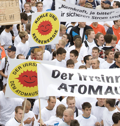 Unter dem Motto "Biblis – Kernig in die Zukunft" demonstrierten am 4. September rund 1.800 Auszubildende in Biblis für die Kernenergie im allgemeinen und für die Laufzeitverlängerung der beiden Blöcke in Biblis im besonderen. Aufgerufen hatten die Gesamtjugend- und Auszubildendenvertretungen (GJAV) des RWE-Konzerns und der RWE Power. Ferner beteiligten sich Abgesandte anderer Kernkraftwerksbetreiber wie der EnBW. Auf der Abschlußkundgebung erklärte der hessische Ministerpräsident Roland Koch (CDU), daß ein Industrieland wie Deutschland nicht auf Strom aus Kernenergie verzichten könne, ohne dabei wirtschaftlich zurückzufallen. RWE-Chef Jürgen Großmann begrüßte es, "daß sich aktive junge Leute hier konstruktiv in die Energiedebatte einmischen". Pressefoto RWE