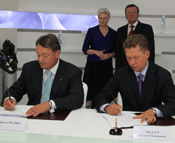 Am 18. Juni unterzeichneten die Chefs von Gazprom und Gasunie, Alexey Miller und Marcel Kramer, eine Absichtserklärung über künftige strategische Zusammenarbeit. Die Zeremonie wurde flankiert von der niederländischen Wirtschaftsministerin Maria van der Hoeven und dem Gazprom-Aufsichtsratsvorsitzenden Viktor Zubkov, der zugleich einer der beiden stellvertretenden Ministerpräsidenten Rußlands ist. Das Memorandum sieht eine weitere Vertiefung der Zusammenarbeit in den Bereichen Gastransport-Infrastruktur, unterirdische Gasspeicher und Bau der Nord Stream-Pipeline vor. Darüber hinaus will man in den Bereichen LNG, Umweltschutz, Energieeffizienz, Informations- und Kulturaustausch, Personal-Management sowie in internationalen Gremien kooperieren.