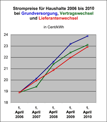 Lieferantenwechsel hilft nur bedingtEin kritischer Blick auf Risiken und Nebenwirkungen der kostenlosen Tarifvergleiche (siehe oben) Eine der frommen Legenden des liberalisierten Strommarktes besagt, daß es an der persönlichen Trägheit liege, wenn ein Verbraucher zu hohe Preise bezahle. Schließlich habe jeder die Möglichkeit, zu einem billigeren Anbieter zu wechseln. Damit verschaffe er sich nicht nur individuell einen Vorteil, sondern trage zugleich dazu bei, den Wettbewerb anzuheizen und das allgemeine Preisniveau zu senken. Die Wirklichkeit des liberalisierten Strommarktes sieht anders aus. Hier kaufen alle Anbieter auf demselben überhöhten Preisniveau ein, das von Großstromerzeugern wie RWE, E.ON, Vattenfall und EnBW bestimmt wird. Die per Vertrieb erzielbaren Preisdifferenzen sind aber gering. Sie werden deshalb oft durch Fußangeln in den Geschäftsbedingungen und optische Täuschungsmanöver wie Vorkasse, Kautionszahlungen und einmalige Boni so manipuliert, daß sie wesentlich günstiger erscheinen.