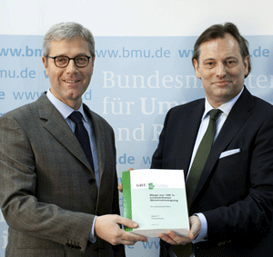 Der SRU-Vorsitzende Martin Faulstich (rechts) bei der Übergabe des 680 Seiten umfassenden Gutachtens an Bundesumweltminister Norbert Röttgen. Pressefoto SRU