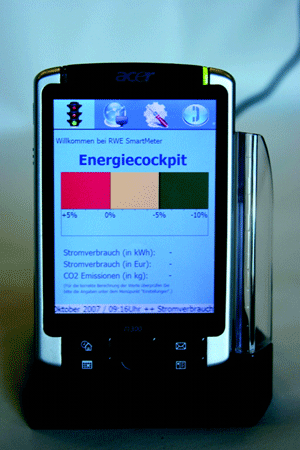 Mit allerlei Schnickschnack wie diesem "Energiecockpit" will RWE die Verbraucher davon überzeugen, daß die Umstellung auf elektronische Zähler mit Fernauslesung, viertelstündlicher Leistungsmessung und zeitvariablen Tarifen auch in ihrem Interesse liege. Foto RWE