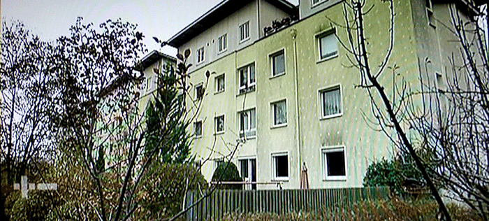 Der Algenbefall hat an dieser gedämmten Hausfassade ein "Leopardenmuster" erzeugt: Dort wo die Dämmplatten mit Plastikdübeln befestigt sind, wird die Wärme besser geleitet. Deshalb wachsen dort keine Algen und bleibt die Fassade hell. (Bild aus der "Plusminus"-Sendung vom 23.11.)
