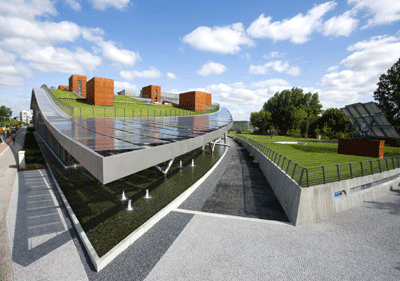 Im Jahr 2008, als zum letzten Male die Gewinne sprudelten, bezog Solon in Berlin-Adlershof ein futuristisch anmutendes Hauptquartier, mit dem das Unternehmen "Anspruch und Wirklichkeit verbinden" wollte. Zum Beispiel befindet sich auf dem begehbaren Dach eine Photovoltaikanlage mit 210 kW Nennleistung. © WISTA-MANAGEMENT GMBH –