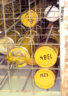 Das seit fünf Jahren stillstehende Kernkraftwerk Brunsbüttel (101202) sorgt auch nach der endgültigen Abschaltung (110302) noch für Schlagzeilen: Im Keller des sogenannten Feststofflagers, in dem Stahlblechfässer mit schwach- und mittelradioaktiven Abfällen lagern, wurden jetzt bei etlichen Fässern Korrosionserscheinungen festgestellt. Ein Faß war sogar so durchgerostet, daß es auseinanderbrach (siehe Foto). Zum Glück passierte das erst, nachdem der Inhalt bereits in einen "Gußcontainer" umgefüllt worden war, mit dem der Abfall später einmal in das Endlager "Schacht Konrad" (100908) verbracht werden soll. Der KKW-Betreiber Vattenfall verschwieg den Vorfall. Seiner Ansicht nach handelte es sich nicht um ein meldepflichtiges Ereignis. Das schleswig-holsteinische Justizministerium als zuständige Atomaufsicht erfuhr erst nachträglich und eher zufällig davon. Über eine Pressemitteilung des Ministeriums vom 7. März gelangte die Sache schließlich an die Öffentlichkeit.