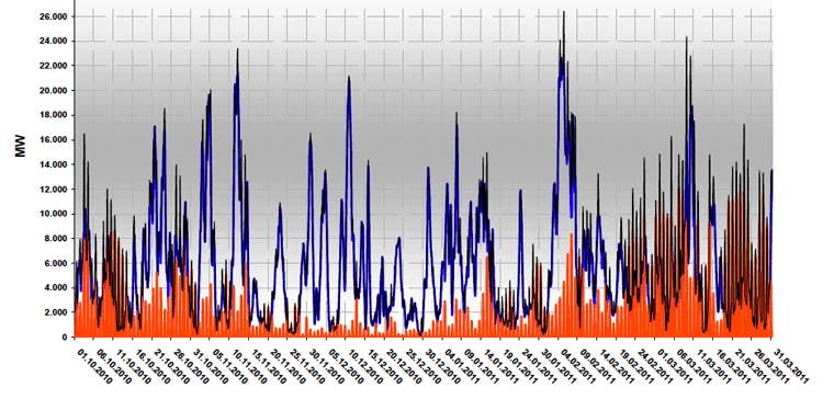 Ein spezielles Problem war der Mangel an Regelenergie, um Prognosefehler der Bilanzkreisverantwortlichen auszugleichen. Bisher war nur bekannt, daß es Anfang Februar zu einer erheblichen Unterspeisung der Bilanzkreise kam, die nicht ausreichend durch positive Regelenergie ausgeglichen werden konnte. Wie jetzt aus dem Bericht hervorgeht, trat bereits im Dezember 2011 der umgekehrte Fall ein, daß eine erhebliche Überspeisung der Bilanzkreise nicht hinreichend durch negative Regelenergie kompensiert werden konnte.