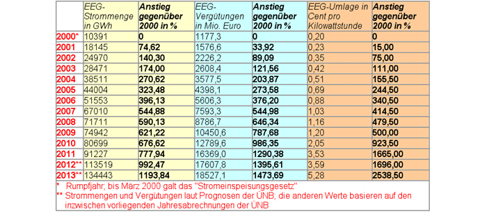 unverhältnismäßig starke Anstieg der EEG-Umlage im Jahr