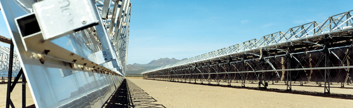 Vom Einstieg in die Solarthermie versprach sich Siemens erhebliche Synergie-Effekte, denn das Unternehmen ist Marktführer bei Dampfturbinen für solarthermische Kraftwerke. Das Bild zeigt die Anlage Nevada Solar One bei Boulder City in Colorado, für die Siemens eine Dampfturbine mit 64 Megawatt Leistung lieferte. Siemens-Pressebild