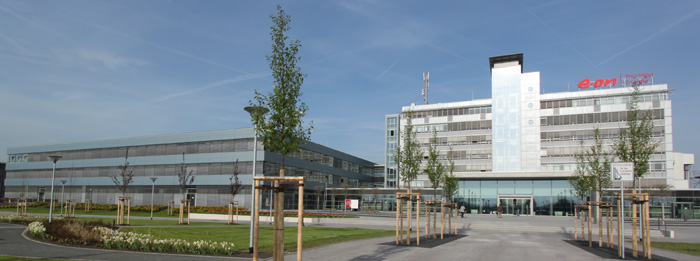 In Kürze wird das E.ON-Logo vom Dach der Hauptverwaltung in Erfurt verschwinden. Das kommunalisierte Unternehmen heißt dann nur noch "Thüringer Energie AG". Pressefoto E.ON Thüringer