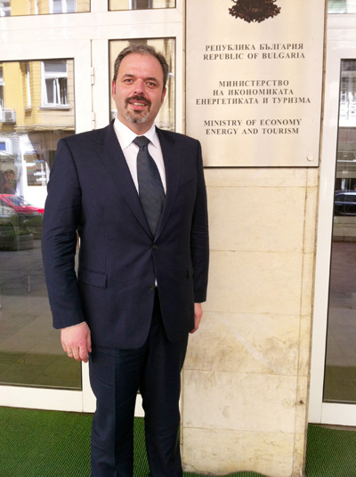 Ein echter Tausendsassa: Care-Energy-Chef Kristek posiert auf diesem Foto vor dem bulgarischen Energieministerium in Sofia, dem er Vorschläge zur Reform der bulgarischen Energiewirtschaft machen will. Foto: mk-group Holding GmbH