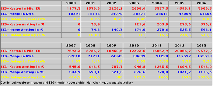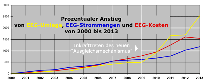 einsetzende Anstieg der EEG-Kosten und die Explosion der EEG-Umlage