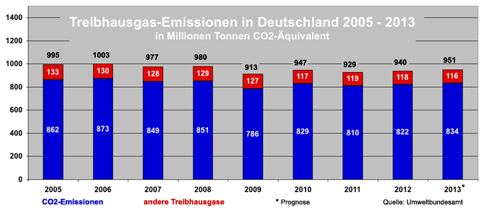 Das Ergebnis ist allerdings insofern keine Überraschung, als es im Grunde nur den bekannten statistischen Befund widerspiegelt, daß die Treibhausgas-Emissionen in Deutschland von 2005 bis 2007 jährlich im Schnitt 992 Millionen Tonnen CO2-Äquivalent betrugen, während es von 2008 bis 2010 im Schnitt nur 947 Millionen Tonnen waren (siehe Grafik 1). Es fand also in den drei ersten Jahren der zweiten Handelsperiode – die beiden restlichen werden von der Untersuchung nicht erfaßt – ein Rückgang um 45 Millionen Tonnen statt.