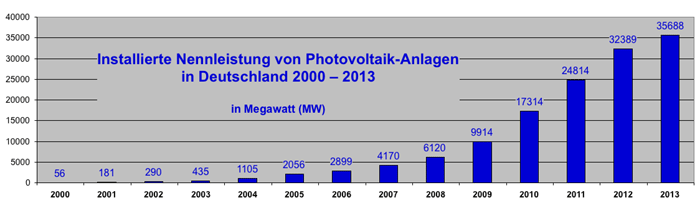 Nach Angaben des Bundeswirtschaftsministeriums ist die Zahl der Beschäftigten in der Photovoltaik-Branche von 100.300 im Jahr 2012 auf rund 56.000 im Jahr 2013 zurückgegangen (140504). Der Bundesverband der Solarwirtschaft nahm dies zum Anlaß, um vor einer weiteren Belastung der Branche zu warnen, die durch durch die geplante Einbeziehung des Eigenverbrauchs von Solarstromerzeugern in die EEG-Umlage drohe (140403). Im vergangenen Jahr habe die Photovoltaik-Nachfrage um fast 60 Prozent nachgelassen. Seit Anfang 2012 sei die Förderung um das Doppelte zurückgegangen, während die Preise schlüsselfertiger Solarsystemeseit nur um 25 Prozent gesunken seien.