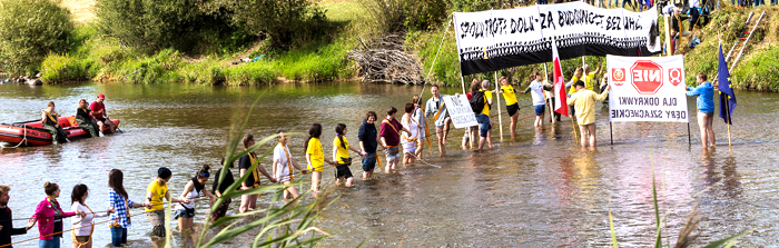 Die Menschenkette verlief an einer seichten Stelle auch durch die Neiße, die in der Lausitz die Grenze zwischen Deutschland und Polen bildet. Foto: Greenpeace Polska