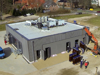 Der mecklenburgische Regionalversorger Wemag hat den Batteriespeicher, mit dessen Errichtung vor einem Jahr begonnen wurde (131010), am 16. September offiziell in Betrieb genommen. Der Speicher verfügt über eine Leistung bzw. Leistungsaufnahme von 5 MW, mit der er kurzfristige Abweichungen zwischen Stromerzeugung und -verbrauch ausgleicht. Im Verteilnetz der Wemag sind diese Schwankungen besonders ausgeprägt, weil es die Einspeisung zahlreicher Windkraftanlagen aufzunehmen hat. Der Stromabsatz des Regionalversorgers stammt deshalb zu 80 Prozent aus fluktuierender Erzeugung. Mit der Glättung der kurzfristigen Diskrepanzen zwischen Erzeugung und Verbrauch stabilisiert der Speicher die Netzfrequenz und ersetzt die Primärregelung, die normalerweise von der rotierenden Masse der Generatoren konventioneller Wärmekraftwerke geleistet wird. Letztendlich lassen sich so konventionelle Kraftwerke einsparen, die sonst nur wegen ihrer Regelfähigkeit am Netz bleiben müßten.