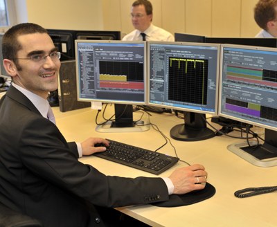 Syneco-Projektleiter Manfred Groh verfolgt in Echtzeit die Leistungsverfügbarkeit der 50 Anlagen des Virtuellen Kraftwerks. Foto: Thüga