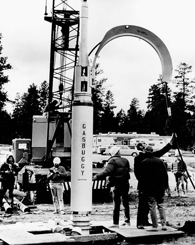 Der "Gasbuggy", der hier ins Bohrloch geschoben wird, hatte mehr als die doppelte Sprengkraft der Hiroshima-Bombe. |