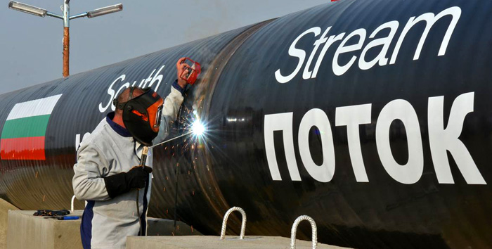 Am 31. Oktober 2013 zelebrierte die Gazprom auf dem Gelände der geplanten Verdichterstation Rasovo das "Verschweißen der ersten Naht" für den bulgarischen Abschnitt der South-Stream-Gaspipeline. Vier Wochen später folgte ein ähnliches Spektakel in Serbien. Es handelte sich um symbolische Aktionen für die Medien, denn die beiden verschweißten Rohre endeten jeweils vorläufig im Nichts. Der tatsächliche Bau sollte jetzt in Bulgarien Mitte Dezember beginnen. Die seit Oktober amtierende neue Regierung verweigerte aber auf Druck der EU-Kommission die Genehmigung. Da Kremlchef Putin weiterhin nicht bereit war, die in der EU geltenden Rechtsvorschriften für Gastransportnetzbetreiber zu respektieren, ließ er daraufhin das ganze Projekt platzen. (Siehe hierzu auch Hintergrund) Foto: Gazprom