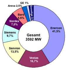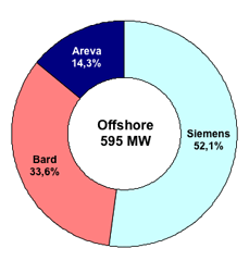 Die hohe Verschuldung des indischen WKA-Herstellers rührt nicht zuletzt aus der Bieterschlacht, die er sich mit dem französischen Nuklearkonzern Areva um die Übernahme des seinerzeit drittgrößten deutschen WKA-Herstellers geliefert hat (070312). Repower war damals neben Multibrid der einzige deutsche Anbieter einer Windkraftanlagen-Technik, die den außergewöhnlich hohen Belastungen auf hoher See standhalten konnte. Das Testfeld "alpha ventus", das im April 2010 als erster deutscher Offshore-Windpark in Betrieb ging (100413), wurde deshalb mit jeweils sechs Anlagen der beiden Hersteller Repower und Multibrid ausgestattet, die bei gleicher Nennleistung (5 MW) unterschiedliche technische Merkmale aufwiesen (091111).