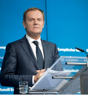 Der polnische Ministerpräsident Donald Tusk bei der Pressekonferenz nach der Sitzung des Europäischen Rats |
