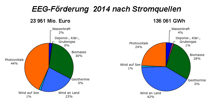 Das Bundeswirtschaftsministerium arbeitet an einer weiteren EEG-Novellierung, mit der die Förderung der erneuerbaren Stromquellen gemäß der Koalitionsvereinbarung vom November 2013 (131101) auf Ausschreibungen umgestellt werden soll. Das seit August 2014 gültige Erneuerbare-Energien-Gesetz sieht in § 2 Abs. 5 ebenfalls vor, daß die Förderung für "Strom aus erneuerbaren Energien und aus Grubengas bis spätestens 2017 durch Ausschreibungen ermittelt" werden soll. Vor einem halben Jahr hat das Bundeswirtschaftsministerium dazu ein erstes Eckpunktepapier veröffentlicht, das seit Dezember 2015 in einer aktualisierten Fassung vorliegt. Im Unterschied zu den Formulierungen im Koalitionsvertrag und im EEG, die pauschal von einer Umstellung der EEG-Förderung sprechen, verdeutlicht dieses Eckpunktepapier, daß nur Wind- und Solarstrom auf Ausschreibungen umgestellt werden sollen. Freilich werden allein damit schon rund siebzig Prozent der derzeitigen EEG-Förderung erfaßt (siehe Grafik). Zudem soll noch geprüft werden, wieweit eine Ausweitung der Ausschreibung auf Biomasse-Anlagen sinnvoll sein könnte, die den Großteil des Rests an Vergütungen ausmachen. Dabei geht es vor allem um Bestandsanlagen, deren Förderung ab 2020 schrittweise ausläuft und die deshalb nicht mehr rentabel wären. Völlig unberührt von der geplanten Umstellung bleiben lediglich die Vergütungsregelungen für Wasserkraft, Deponiegas, Klärgas, Grubengas und Geothermie, die insgesamt weniger als drei Prozent der EEG-Förderung beanspruchen.