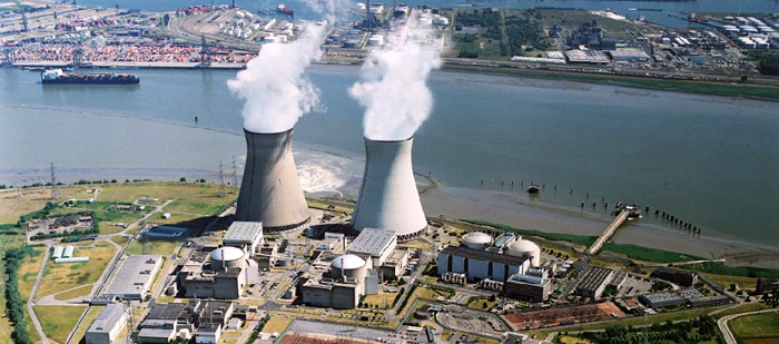 Mehr als die Hälfte des belgischen Atomstroms kommt aus den vier Reaktoren des Kernkraftwerks Doel an der Schelde. Die Blöcke 1 und 2 (rechts) sind die ältesten der insgesamt sieben belgischen Reaktoren und hätten eigentlich 2015 stillgelegt werden müssen. Die Regierung sorgte aber für eine Gesetzesänderung, die dem Betreiber Electrabel eine Ausweitung der Laufzeiten auf fünfzig Jahre sowie eine starke Ermäßigung der steuerlichen Abschöpfung der KKW-Gewinne beschert. |