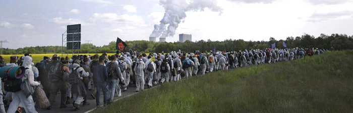 Mehr als 2000 Kohle-Gegner besetzten an den Pfingstfeiertagen den Tagebau Welzow-Süd im Lausitzer Braunkohlerevier, um Bagger und Förderbänder zum Stillstand zu bringen. Außerdem blockierten sie die Bahngleise, die den Tagebau mit dem benachbarten Kraftwerk Schwarze Pumpe verbinden. Wegen des ausbleibenden Kohle-Nachschubs mußte der Betreiber Vattenfall die Leistung der beiden 800-MW-Blöcke des Kraftwerks stundenlang reduzieren. Zuletzt soll Block A sogar vollständig abgeschaltet worden sein, während Block B nur noch mit 40 Prozent der Leistung lief.