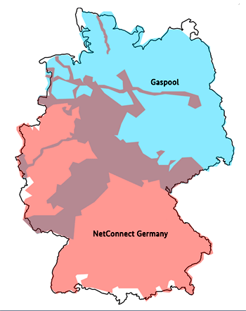 Damit gab es in Deutschland ab 1. Oktober 2009 nur noch sechs Marktgebiete, wobei Net Connect Germany, Gaspool und Thyssengas über jeweils ein Gebiet für H-Gas und L-Gas verfügten. Die im August 2010 erlassene Gasnetzzugangsverordnung sah jedoch eine weitere Reduzierung auf nur noch zwei Marktgebiete vor, die bis spätestens 2013 zu verwirklichen war (100811). Diese Forderung wurde bereits zum 1. Oktober 2011 erfüllt: Zunächst gab die Thyssengas ihre eigenständige Rolle auf und trat Net Connect Germany bei. Anschließend vereinigten die beiden noch verbliebenen Marktverantwortlichen Net Connect Germany und Gaspool ihre bislang noch separaten Handelsgeschäfte mit H-Gas und L-Gas in jeweils einem einzigen Marktgebiet.