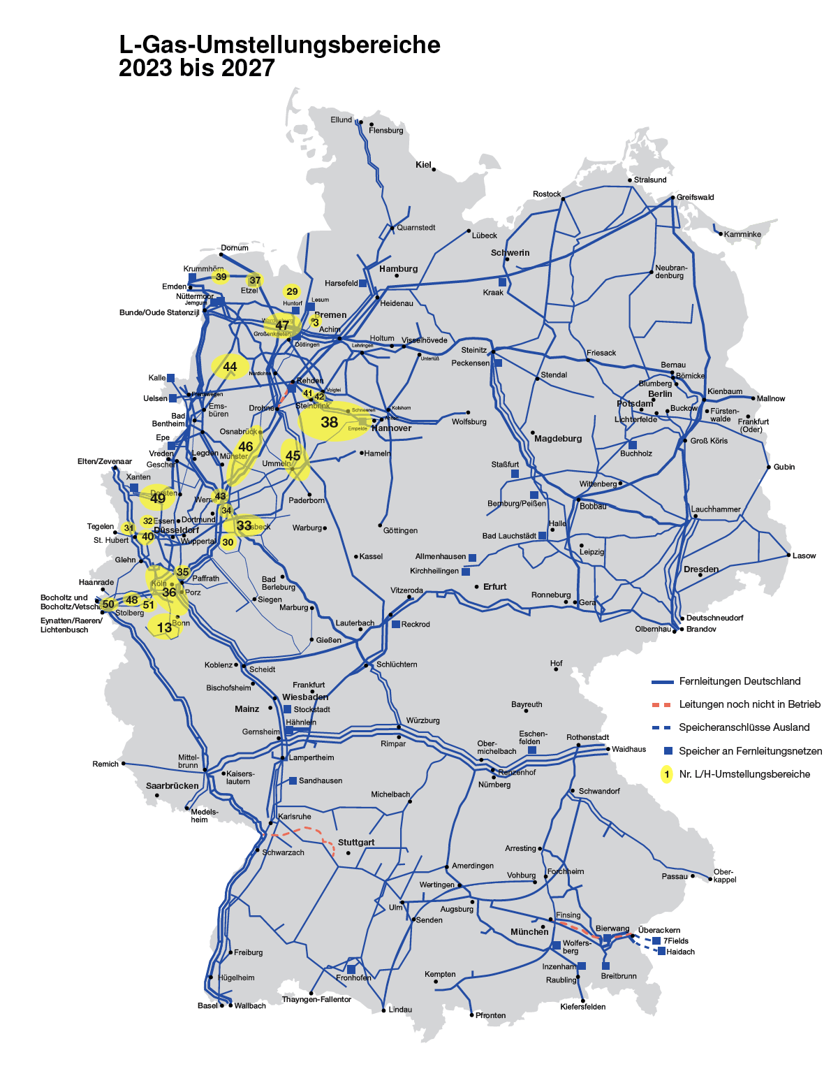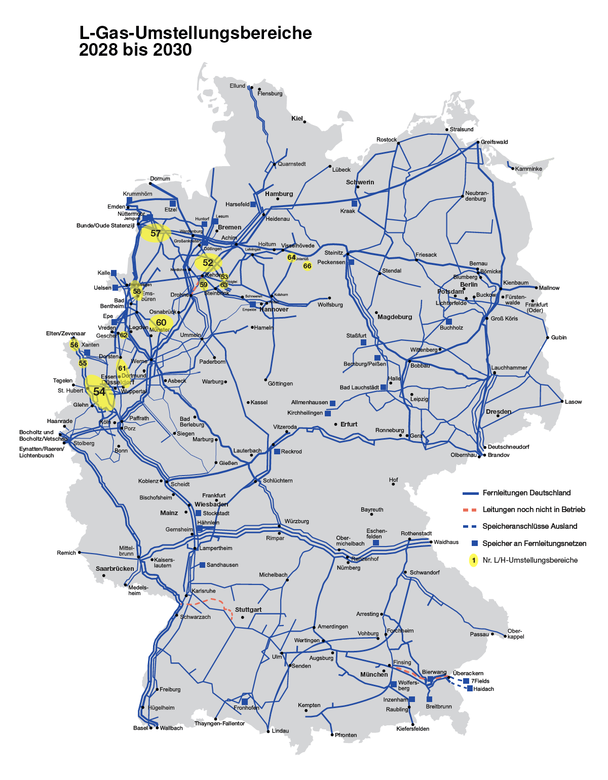 Die Umstellung der L-Gasnetze auf H-Gas erfolgt binnen 15 Jahren in drei Abschnitten