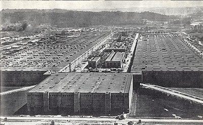 Die nach dem Gasdiffusionsverfahren arbeitende Urananreicherung "K 25" in Oak Ridge war seinerzeit das größte Gebäude der Welt. Hier arbeiteten rund 25.000 Menschen an dem Stoff, mit dem die Hiroshima-Bombe gebaut wurde. |