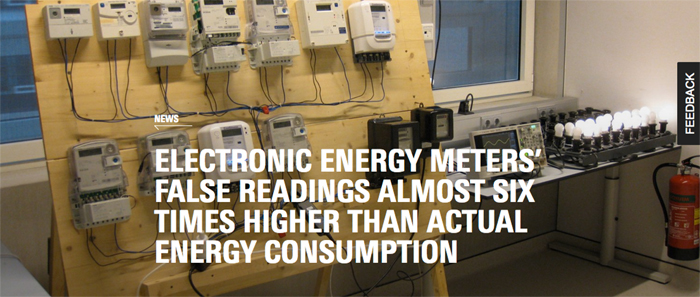 Vor kurzem überraschte die niederländische Universität Twente mit einer Untersuchung, die horrende Fehlmessungen durch Smart-Meter erbrachte. Das Foto zeigte die Versuchsanordnung mit verschiedenen Smart-Metern (links) und zwei alten Ferraris-Zählern zum Vergleich (Mitte). Rechts sind die elektronischen Verbrauchselemente zu sehen, deren Oberwellen das Meßergebnis um bis zu 582 Prozent verfälschen konnten. |