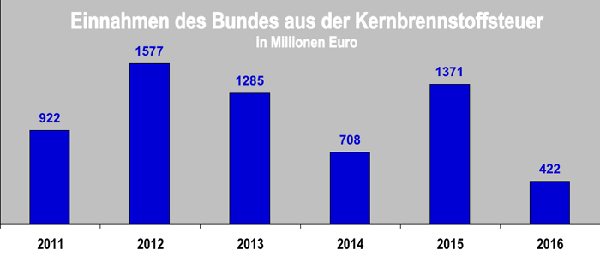 Als der Koalitionsausschuß von Union und FDP am 29. Mai 2011 über die atompolitische Kehrtwendung nach Fukushima beriet, hielt er es deshalb nicht für opportun, diese Steuer wieder abzuschaffen. Die Höhe der Erträge – die jetzt ohnehin geringer ausfallen würden – stand dabei sicher nicht im Vordergrund. Vielmehr ging es darum, der Opposition keine Angriffsflächen zu bieten. Als Bestandteil des Gesamtpakets zur Verlängerung der Laufzeiten für alle deutschen Atomkraftwerke war die Kernbrennstoffsteuer zwar nur mit den Stimmen der schwarz-gelben Koalition beschlossen worden (101002). Grundsätzlich hielten es aber alle Bundestagsparteien für eine löbliche Absicht, wenigstens einen Teil der Extra-Profite, welche die KKW-Betreiber nun einheimsen würden, über die Besteuerung der Brennelemente zurückzuholen (100704). Die Koalition wollte sich keinesfalls dem Vorwurf aussetzen, mit der Rücknahme der Kernbrennstoffsteuer schon wieder die Atomkonzerne zu begünstigen.