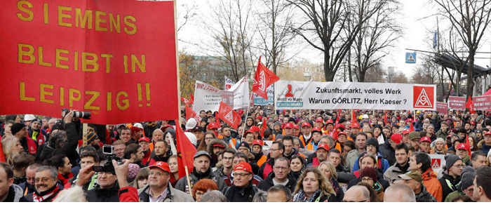 Am 23. November protestierten rund 2500 Metallgewerkschafter in Berlin gegen den Arbeitsplatzabbau bei Siemens, darunter viele Beschäftigte der beiden Werke in Leipzig und Görlitz, die komplett geschlossen werden sollen.