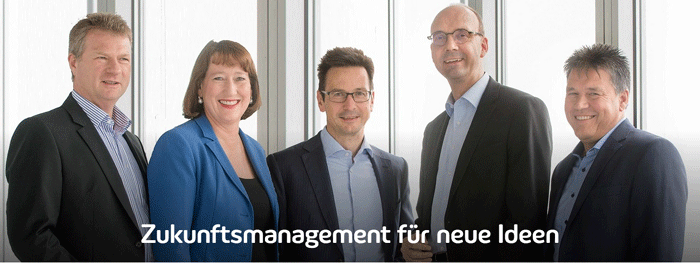 Da waren's nur noch fünf: Zur bildlichen Vorstellung des verkleinerten Vorstands verwendete Innogy offensichtlich ein vierzehn Monate älteres Foto, auf dem der bisherige Vorstandsvorsitzende Peter Terium einfach ausgeblendet wurde. In der ursprünglichen Fassung zeigte das Foto v.l.n.r. die Innogy-Vorstände Hans Bünting (Erneuerbare Energien), Hildegard Müller (Netz und Infrastruktur), Peter Terium (Vorsitzender), Bernhard Günther (Finanzen), Martin Herrmann (Vertrieb) und Uwe Tigges (Personal). Fotos(2): Innogy