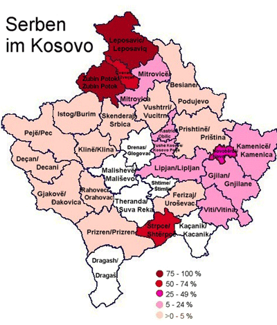 Die Serben sind die größte Minderheit im überwiegend von Albanern bewohnten Kosovo. Im Norden des Landes sind sie sogar die Mehrheit und sollen deshalb durch eine Tochter des staatlichen serbischen Stromversorgers EPS beliefert werden. Grafik: Wikipedia