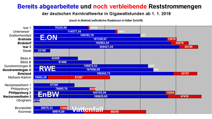 Eine solche Übertragung war schon bisher möglich. Zum Beispiel würden die E.ON und EnBW eingeräumten Spielräume reichen, um auch noch die Reststrommengen von Vattenfall komplett abarbeiten zu können. Es wurde aber versäumt, eine solche Übertragung rechtlich abzusichern. RWE hätte ebenfalls mehr als genug Spielraum gehabt, um die Reststrommengen seiner real existierenden Kernkraftwerke abzuarbeiten. Die schwarz-gelben Gesetzesmacher haben jedoch die fiktive Reststrommenge nicht hinreichend berücksichtigt, die der RWE-Konzern im Jahr 2000 im Konsens-Vertrag mit der rot-grünen Bundesregierung dafür erhielt, dass er den Genehmigungsantrag für das KKW Mülheim-Kärlich sowie die Schadenersatzklage gegen das Land Rheinland-Pfalz zurückzog (010602, 030906).