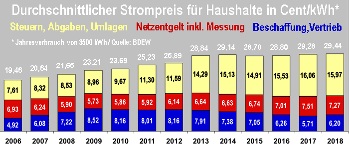 Als Niederspannungskunden zahlen Haushalte die höchsten Netzentgelte (rot), zumal sie auch noch die weitgehende Befreiung der Großverbraucher mittragen müssen (111004, 180514). Die Grafik läßt erkennen, wie diese Belastung ab 2007 zunächst zurückging und ab 2010 wieder zunahm: Bis 2006 waren die Netzentgelte wegen der fehlenden Regulierung deutlich überhöht. Als die neugeschaffene Bundesnetzagentur die ersten Genehmigungsbescheide verschickte, mußten deshalb alle vier Übertragungsnetzbetreiber mehr oder minder große Abstriche hinnehmen (060601, 060803). Auch bei Verteilnetzbetreibern wurde genauer hingeschaut (060510). Als dann die sogenannte Anreizregulierung beschlossen wurde (071103), die ab 2009 die Netzentgeltgenehmigung ersetzte, befürchteten viele Netzbetreiber anfangs noch empfindlichere Einbußen (080414). Stattdessen kam es aber eher zu einer "Schonwirkung" mit einem kontinuierlichen Wiederanstieg der Netzentgelte (080710). Schon 2009 kritisierten deshalb Verbraucherverbände und Energieanbieter die "undurchsichtige Regulierungspraxis" (090915). |