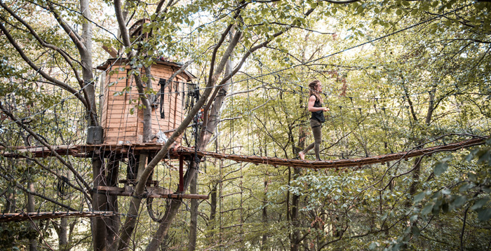 Die Braunkohlegegner hatten im Hambacher Forst rund fünfzig Baumhäuser errichtet und teilweise mit Laufstegen verbunden. Auf Anweisung der Landesregierung wurden die Behausungen von der Polizei geräumt und abgerissen, weil sie die Brandschutz-Vorschriften nicht erfüllen würden. Foto: Tim Wagner