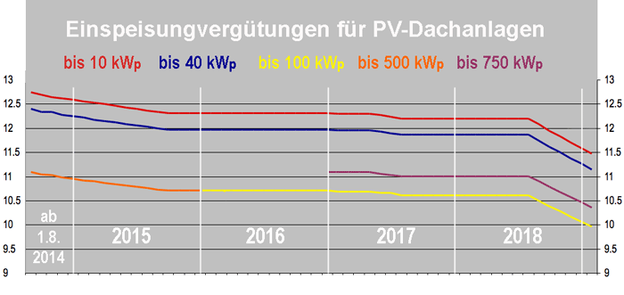 bis 40 kWp (Festvergütung ab 1.8.14) |