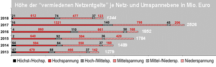 Das sachlich unbegründete und logisch unsinnige Konstrukt der "vermiedenen Netzentgelte" hat die Netzentgelte und damit die Stromverbraucher im vergangenen Jahr mit der Rekordsumme von 2,5 Milliarden Euro belastet. Dies ergibt sich aus dem "Monitoringbericht 2018", den die Bundesnetzagentur und das Bundeskartellamt jetzt gemeinsam vorlegten. Zugleich stellt der Bericht für das Jahr 2018 einen deutlichen Rückgang dieser Kosten auf 1,35 Milliarden Euro in Aussicht. Aber das ist nur ein schwacher Trost, wenn man bedenkt, dass es sich bei den "vermiedenen Netzentgelten" gar nicht um vermiedene Netzentgelte handelt. Hinter dem technisch-fachmännisch klingenden Euphemismus verbirgt sich vielmehr eine zusätzliche Belastung der Netzentgelte, die den Stromverbrauchern seit fast zwanzig Jahren ohne plausible Begründung abverlangt wird. Die so eingetriebenen Summen kommen auch nicht etwa dem Netz oder den Netzbetreibern zugute, sondern ausschließlich Kraftwerksbetreibern.