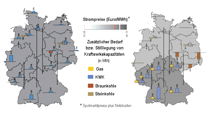 Die Autoren haben noch andere mögliche Aufteilungen des deutschen Strommarkts untersucht - mit drei, vier oder mehr Gebieten. Zum Beispiel errechneten sie für drei Handelszonen einen noch etwas höheren "Wohlfahrtsgewinn" (1036 statt 1007 Millionen Euro). Der zusätzliche Aufwand würde hier allerdings weniger lohnen. Vor allem sind schon zwei Handelszonen in Deutschland politisch kaum durchsetzbar, weil Stromhändler, Börse, Industrie, Branchenverbände und Netzbetreiber strikt gegen eine solche Lösung zur Behebung der chronischen Netzengpässe sind.