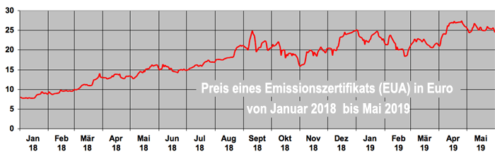 Das Grundübel war der ständige Überfluss an Emissionsberechtigungen. Erst zehn Jahre nach der Installierung des Systems machten sich die Politiker in Brüssel allmählich Gedanken über die Notwendigkeit einer Verknappung, Dann dauerte es noch weitere Jahre, bis die zaghaften Reformen umgesetzt waren und Wirkung zeigten. Noch Anfang 2018 dümpelte der Preis für eine Emissionsberechtigung bei acht Euro. Erst dann zog er allmählich an. Aber das ist noch lange keine Garantie dafür, dass der Emissionshandel in der 2021 beginnenden vierten Handelsperiode tatsächlich greifen wird. Und falls er tatsächlich greift, könnte er sogar den für das Jahr 2038 geplanten Kohleausstieg in Deutschland zum "Schlag ins Wasserbett" machen, sofern er zuvor nicht nochmals gründlich reformiert wird (190603).
