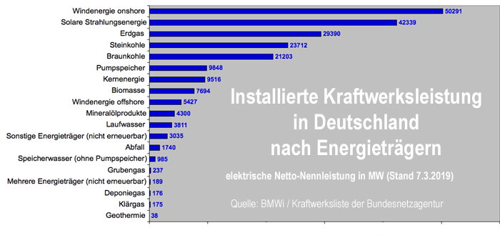 | Aktuell erfasst die Kraftwerksliste der Bundesnetzagentur Stromerzeugungsanlagen mit einer Netto-Nennleistung von insgesamt 214,2 Gigawatt, wovon 109,7 GW auf die erneuerbaren Energien entfallen. |